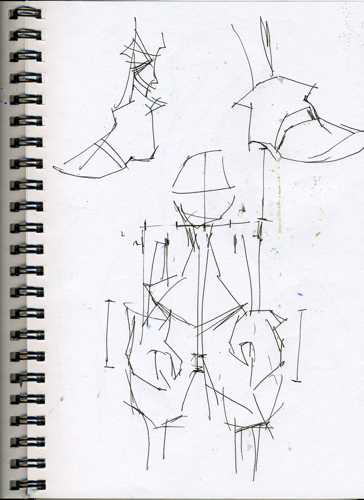 Ink sketches of legs, paying particular attention to feet (in shoes)